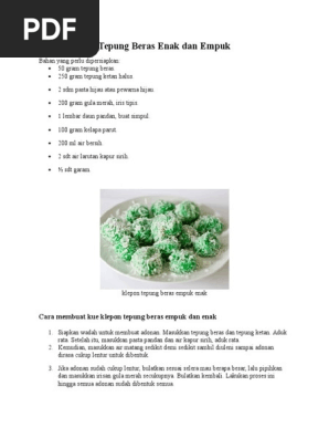 Kue tepung beras santan kelapa ini cukup banyak. Cara membuat klepon agar tidak pecah. Klepon lumer250 gr tepung ketan50 gr tepung beras250 ml air1 sdt pasta pandan2 tetes pewarna hijau1/2 sdt garam100 gr gula merah, sisir haluskelapa parut. Meskipun bisa disimpan dalam waktu lama, tepung beras cenderung tengik atau apak setelah 1 tahun. Saat ini kita bisa dengan.